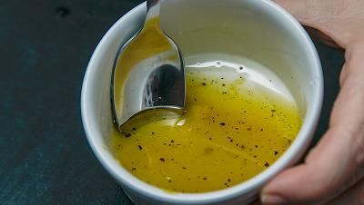 1 colher de sopa de óleo de coco + 1 dente de alho ralado + 1 limão espremido;